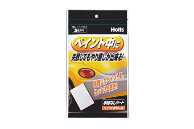 塗料の付きをよくするために「手間なしシート脱脂用」でキズと周辺の汚れ、油分を拭き取りきれいにしましょう。