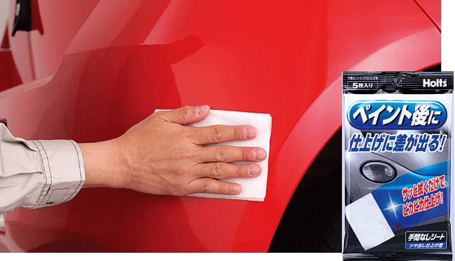 「手間なしシートツヤ出し仕上げ用」で拭くだけで補修のムラを消してツヤを出しきれいに仕上がります。トップコーティングスプレーを使用した場合、この作業は必要ありません。