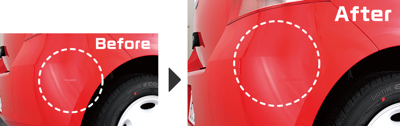 エアープラスLightでペイントするだけでは目立ってしまうキズの簡単な補修に最適。キズに塗って、かきとって、周りをきれいにするだけです!